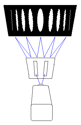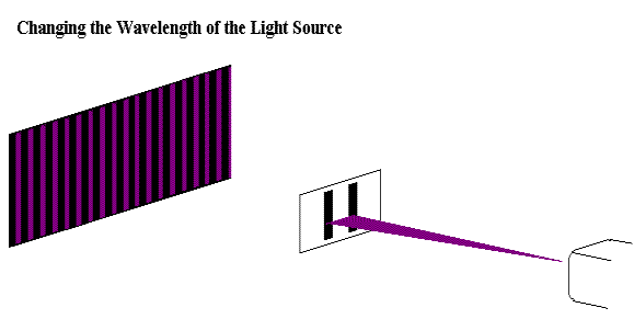 Increasing the wavelength of the light increases the spacing between different fringes since the spacing between different fringes is wavelength dependent. Red light has the largest wavelength of the color spectrum with a range of 625 - 740 nm, while violet has the smallest wavelength with a range of 380 - 435 nm. |