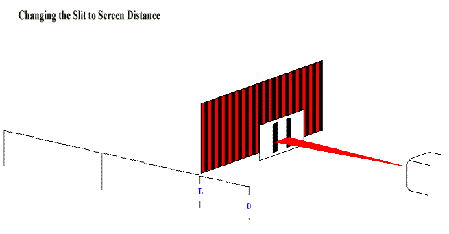The spacings between different fringes decreases as the distance between the slits increases because it is dependent on L. |
