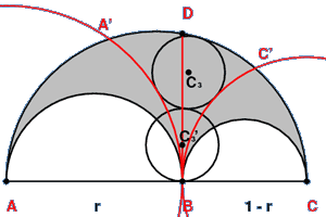 The circle C3, tangent to arcs BA', BC', AA'DC'C, is known as an Apollonius Circle.