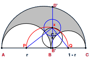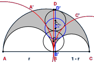 Futhermore, the circle C3'' with center on B'D' and tangent to the small semicircles of the arbelos also has radius R.