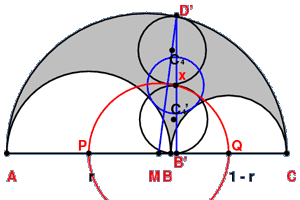 The radius of C4'' is Dy'/2 = r(1 - r)/2 = R, the radius of an Archimedes circle.