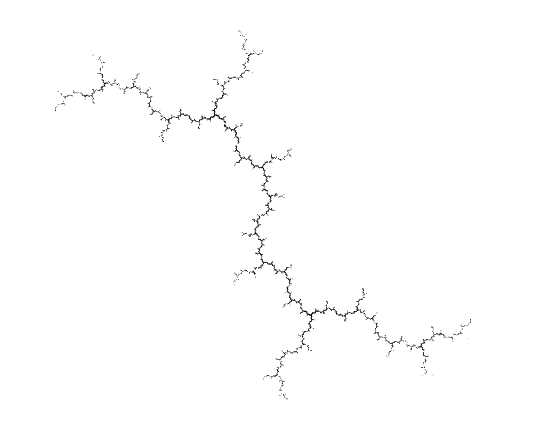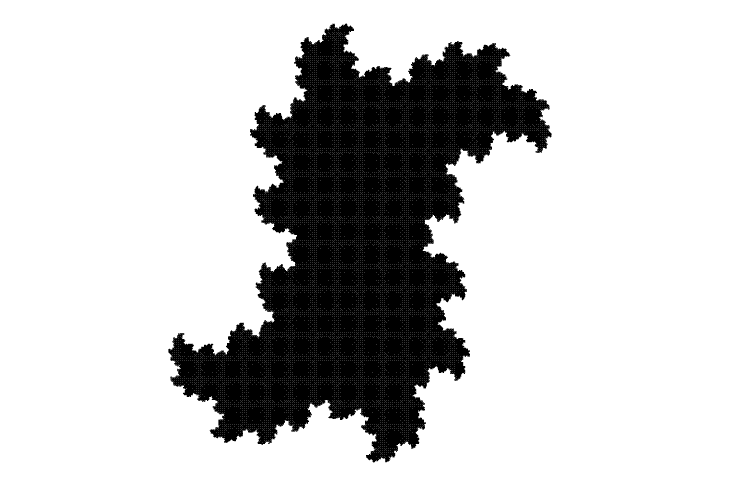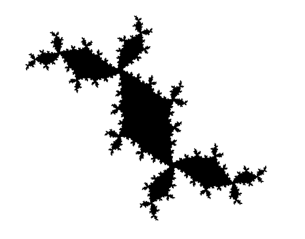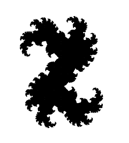 This set lies between the boundary of scaping points and the basin of attraction and It is called THE JULIA SET. and here is an example.