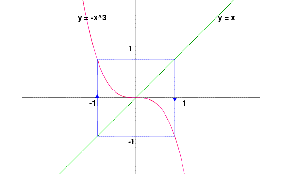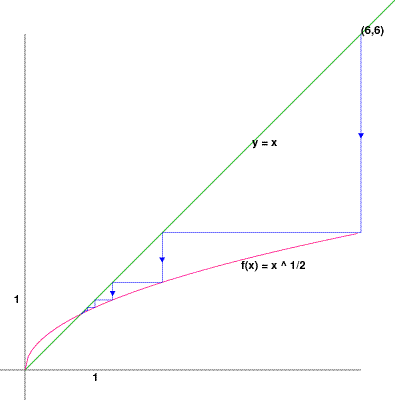 - This line intersects with the line x = y and results in an iteration; previous y = new x. So we can have f(f(x)).