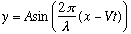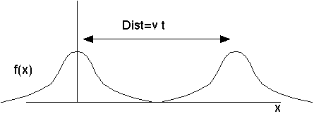 Here's a wave moving to the right. (Applying the notion scaling and shifting in the wave motions) If the wave shape at time zero has the form y=f(x), then a moving wave will have a shape at later time y=f(x-Vt).